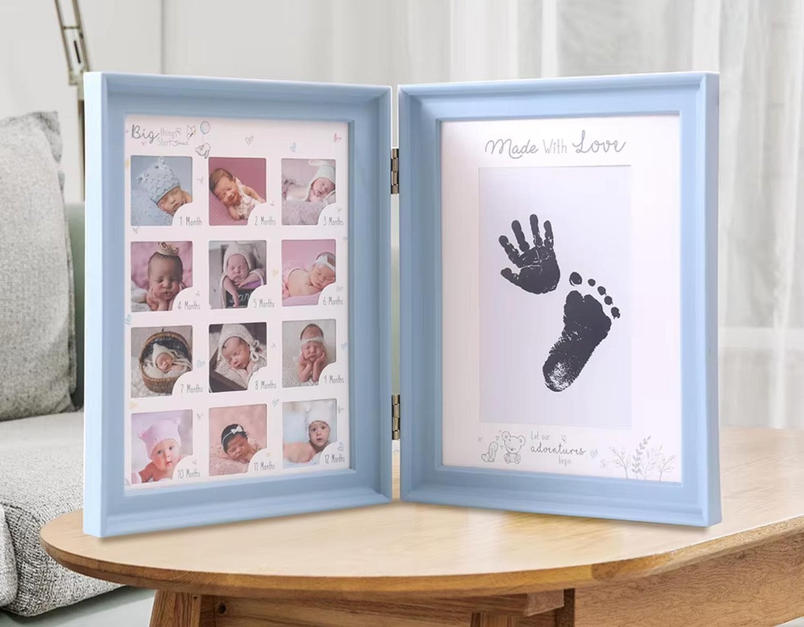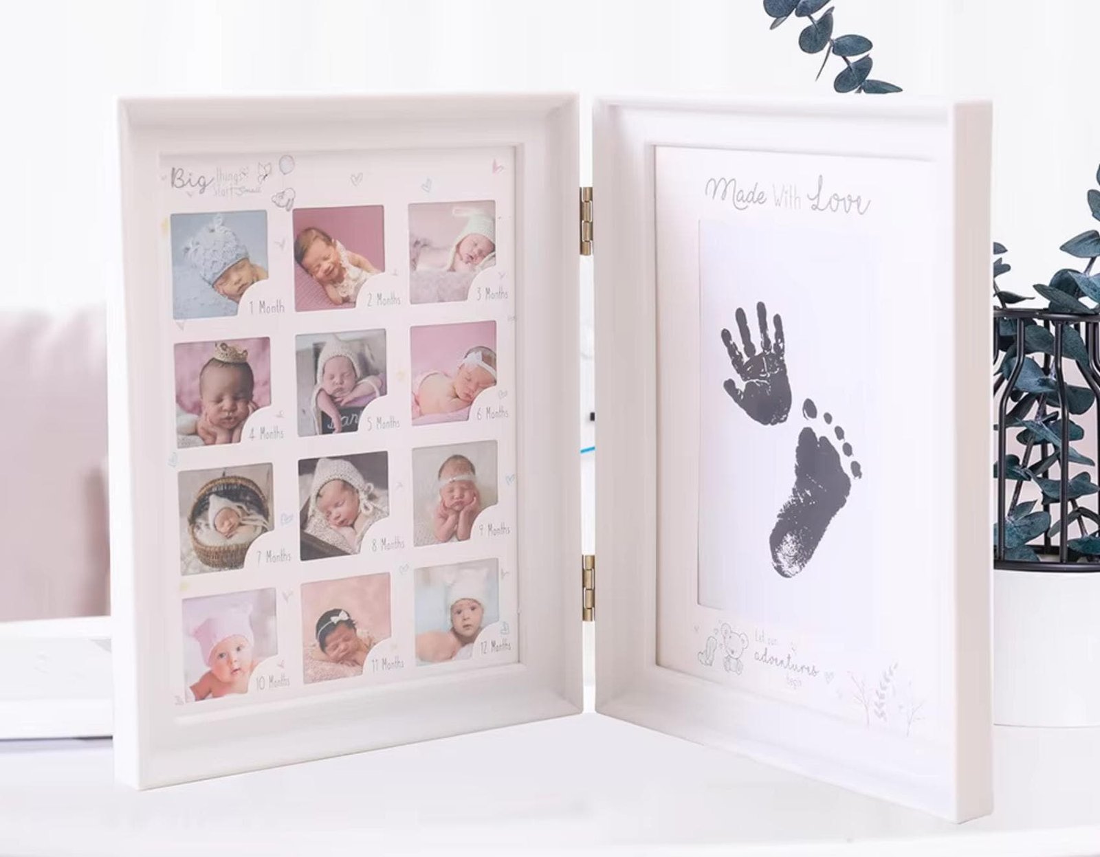 - 0–12 Month Milestone Display – Dedicated photo slots to capture each month of your baby’s first year.